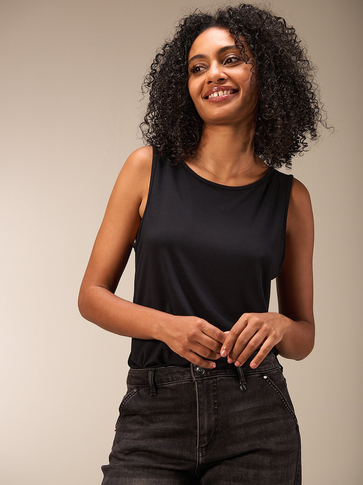 Lässig geschnittenes Top mit U-Bootausschnitt und seitlichen Schlitzen. Das Top besticht dank der hochwertigen Tencel Qualität durch ein weiches und fliessendes Tragegefühl ohne Transparenz.