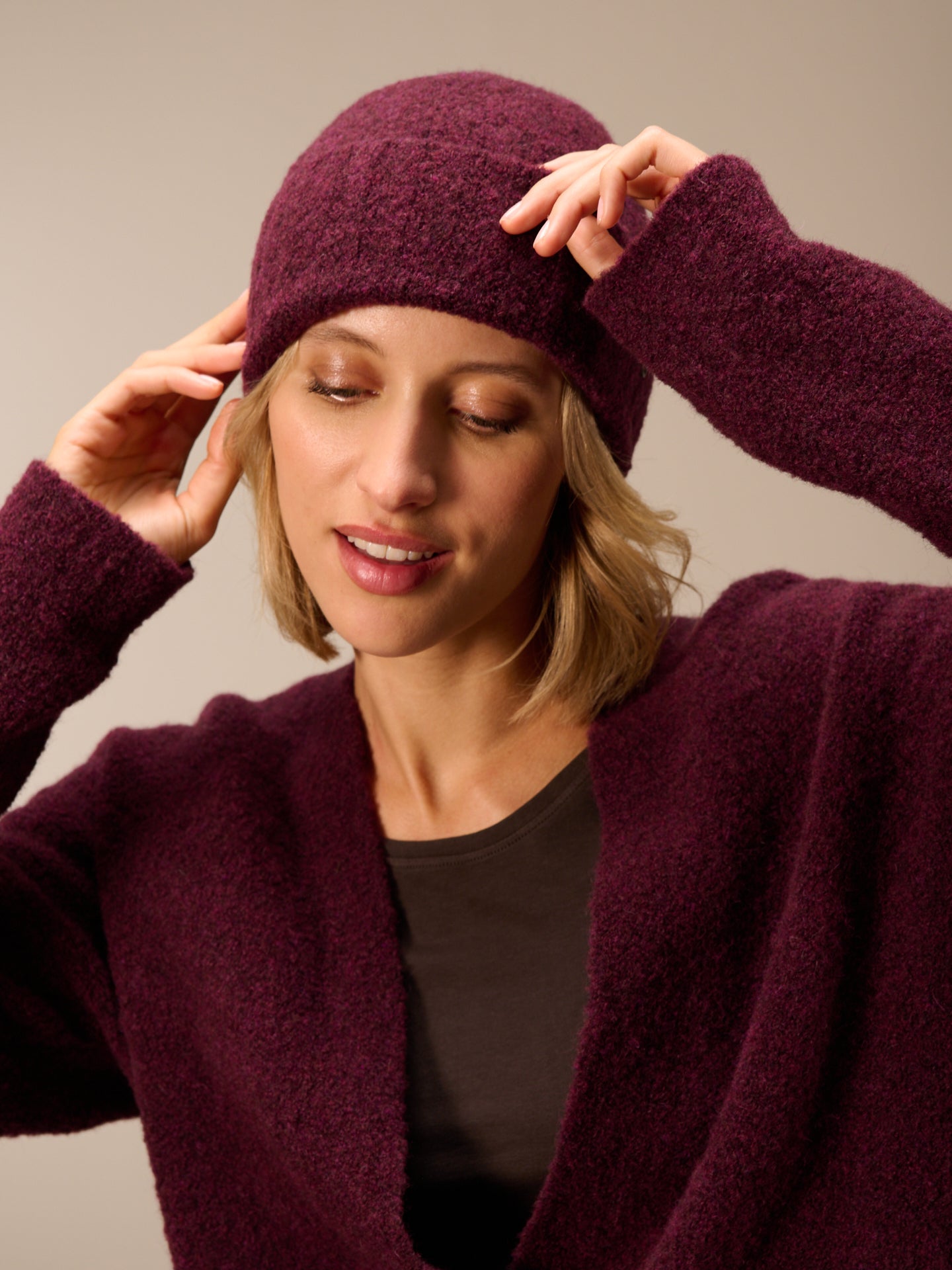 Strickmütze mit breitem Umschlag in Rippen Optik.